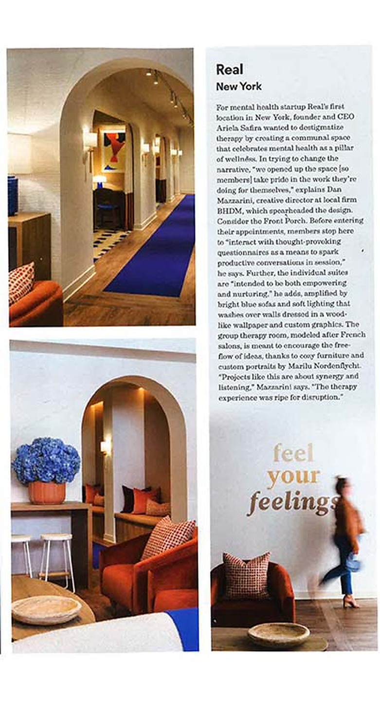 In article "Feeling Good," Concrete Washi 3596 Set in Cement in was featured in the lobby of Real New York, a mental health start up.