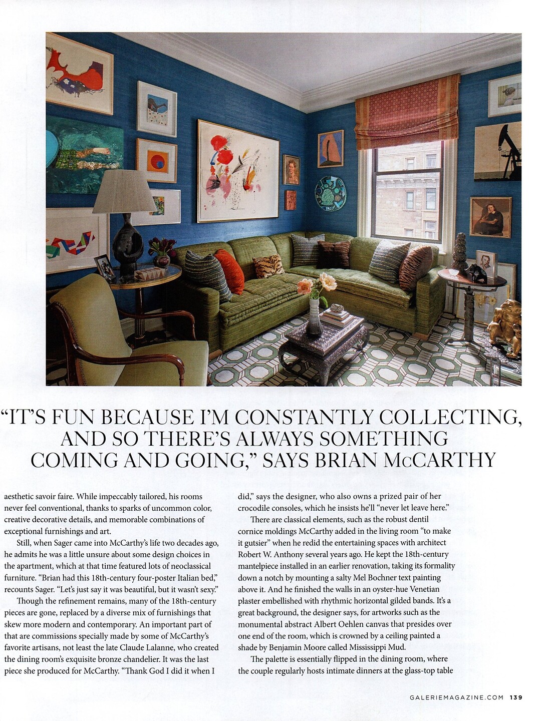 In the article "New York City" interior designer Brian McCarthy featured Juicy Jute 4829 Blueberry in the living room of a clients home.